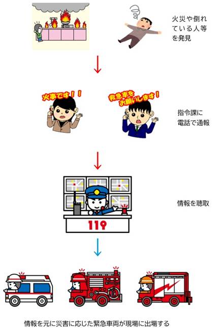 最初に指令課員が「火事ですか?救急車の要請ですか?」と聞きます。