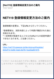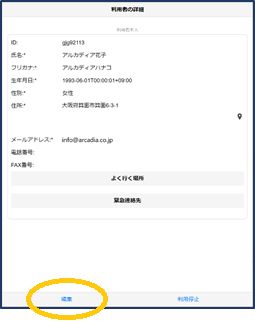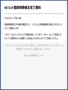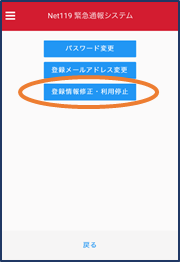 登録内容の変更の流れ ![]() (1) メニューバーから「アカウント管理」を選びます。 ![]() (2) 「登録情報修正・利用停止」を選びます。 ![]() (3) 登録してあるアドレス宛に、登録情報変更の案内メールが届きますので、メール中に記載のURLをタップします。 ![]() (4) 左下の「編集」を選びます。 ![]() (5) 追加/変更したい部分を編集し、「確認」を押します。 ![]() (6) 内容を確認し、問題がなければ「申請」を押します。 ![]() (7) 消防本部が申請を受理すると、登録情報修正完了通知がメールで届きます。 ※ 修正完了までに時間がかかる場合があります。 |