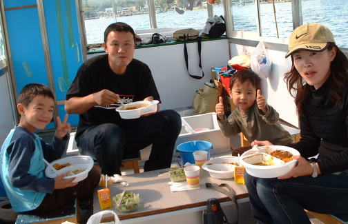 | ファミリーでゆったり・・・ | 船内からの富士山です。 | ||||||