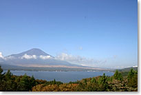 18 October 2004,9:32 気温11度 湿度49% 昨日は富士山新五合目に行ってきましたが、日曜日が晴れるというのは1ヶ月ぶりとのことで、駐車場は満杯でした。紅葉の色は今ひとつという感じでしたが、お天気がすばらしく気持ちがよかったです。山中湖の木々はまだまだです。 今朝の大きな富士山はこちらをクリックしてください。 |