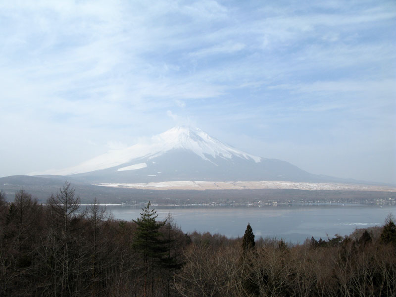 2008 3/11 8:35am 今朝はずいぶん暖かい朝となりました。気温がぐーんと上がったので湖面に靄がたっています。これで山中湖も暖かくなりそうです。 |