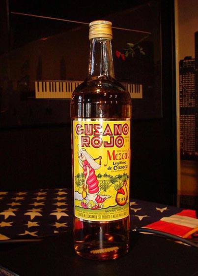 その名は「グサーノ・ロホ」。メキシコのメスカルというスピリッツなのですが、このお酒、原料となる竜舌蘭につくイモ虫をご丁寧にもボトルに一匹づつ入れてあるのです。最初は偶然入ったらしいのですが、それが世界的に売れるきっかけになったという話・・・今の日本では考えられないことであります。