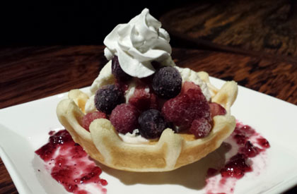 手作りワッフルの器に バニラアイスと生クリーム、 フローズンラズベリーや ブルーベリーをトッピング。 |
