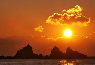 という形で収められています。海の音(潮満引=ツクヨミ)が 聞こえる中での修祓(大祓詞奏上)の後、六根清浄祝詞(ア マテラス)そして和歌(スサノオ)と正式な神事の次第に則っ て収録されました。